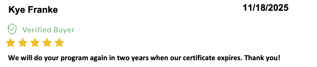 “quick and easy purchasing. Great re-fresher course. Workers liked how quick and easy it was to go through.”